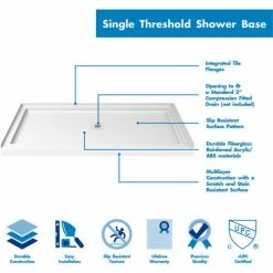 DreamLine DLT-1036482 SlimLine 36" x 48" Double Threshold Shower Base Right H& Drain