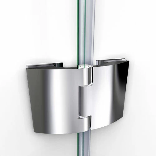 - Hinged door and stationary side glass panel