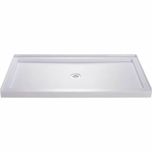Shower base dimensions: 60 in. W x 30 in. D x 2.75 in. H High quality scratch & stain resistant acrylic Slip-resistant textured floor for safe showering Integrated tile flange for easy installation & waterproofing Fiberglass reinforcement for durability CUPC certified Drain not included Center drain configuration Limited lifetime manufacturer warranty Plumbing codes vary by state; DreamLine is not responsible for code compliance