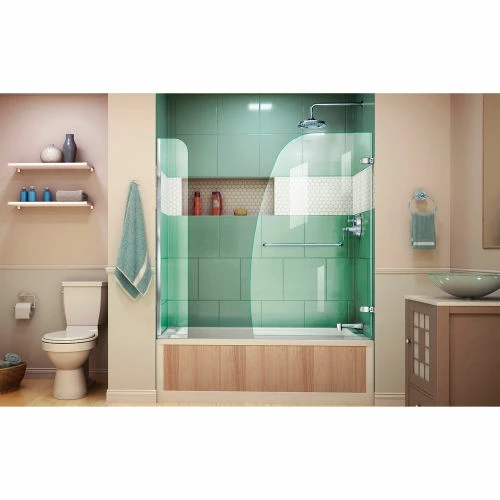 The AQUA UNO Tub Door with Extender Panel makes a statement with a distinctly curved silhouette that delivers an exquisite custom glass look. The single swing tub door is striking with sophisticated frameless glass that flows with any bathroom design. The Extender Panel provides additional splash coverage. Choose the AQUA UNO Tub Door with Extender Panel for a quenching dose of unparalleled style.