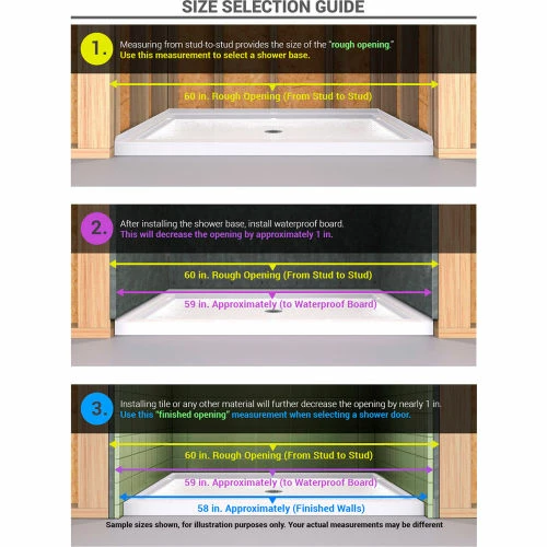 Note: To minimize leakage, install shower head opposite of door opening aimed at tiled walls, fixed shower panel or floor.