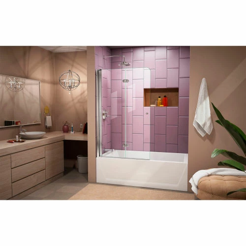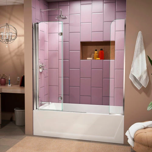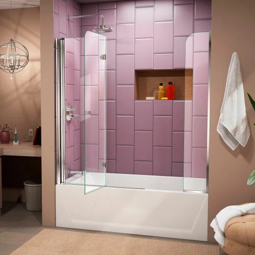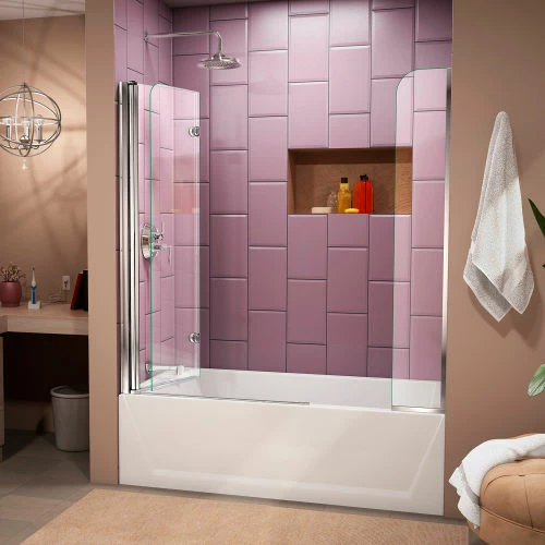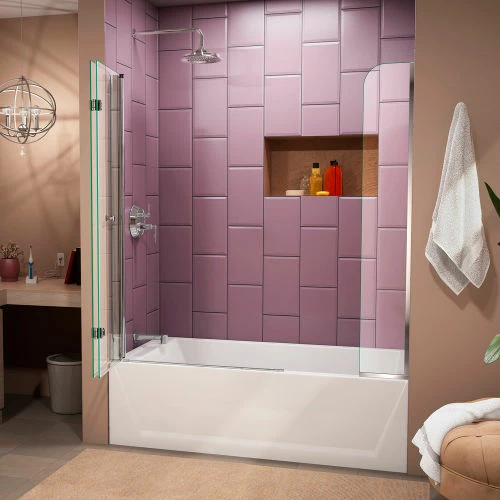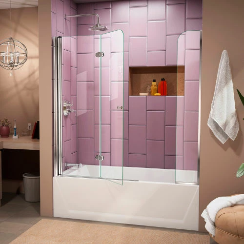 The AquaFold Tub Door with Extender Panel is the perfect combination of function and style. The door makes a statement with a sophisticated curved silhouette, while the practical feature of the bi-fold action offers convenience. The Extender Panel provides additional splash coverage. Choose the AquaFold Tub Door with Extender Panel for a unique and modern look at an attractive price point.