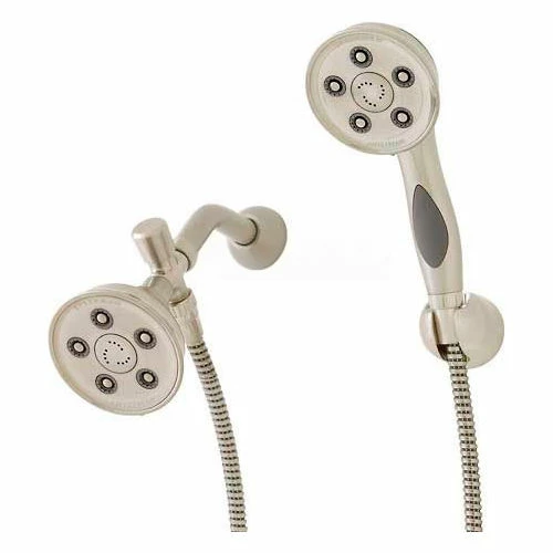 Offering 100 invigorating Speakman sprays, the Anystream® Caspian 2-Way Shower System features two individually adjustable massage showerheads. Enjoy the versatility of gentle rain; full-flood, and pulsating massage streams from either the fixed Anystream® Caspian Showerhead (S-3014) or the Anystream® Caspian Hand-held Shower (VS-3014). Integrating two new Speakman showers, the chrome-plated brass 2-way pop-up diverter transfers water from the fixed-mount massage showerhead to the massage hand-held shower. The hand-held shower with its 60 no-tangle hose hang freely and can mount easily to a simple wall bracket. Both showerheads are equipped with 2.5 GPM flow controls and adjust with a simple turn of their face plates. Available in Polished Chrome and Brushed Nickel finishes to match any shower decor.