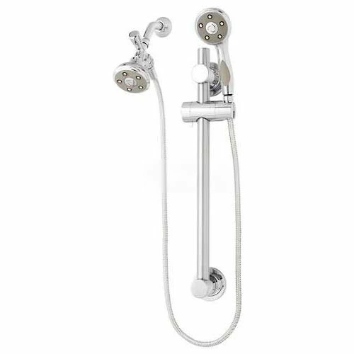 Enjoy rejuvenating Speakman showers at any height — standing or sitting — with the Anystream® ® Massage Slide Bar Mounted Combination Shower. Featuring the fixed Anystream® Napa Showerhead and slider bar mountable Anystream® Massage Hand-held Shower, this attractive, modern system combines 10 total jets for 100 versatile, full-body sprays. Integrating two new Speakman showers, the chrome-plated brass 2-way pop-up diverter transfers water from the fixed-mount Massage to the Massage hand-held shower. The hand shower and its 60 no-tangle hose can mount easily to a combination grab/slide bar. Both showerheads are equipped with 2.5 GPM flow controls.