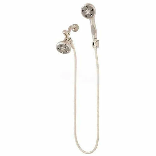 Offering 100 invigorating Speakman sprays, the Anystream® Napa Wall Mounted Combination Shower features two individually adjustable massage showerheads. Enjoy the versatility of gentle rain; full-flood, and pulsating massage streams from either the fixed Anystream® Napa Showerhead (S-2007) or the Anystream® Napa Hand-held Shower(VS-2007).Integrating two new Speakman showers, the chrome-plated brass 2-way pop-up diverter transfers water from the fixed-mount Massage to the Massage hand-held shower. The hand-held shower and its 60 no-tangle hose hang freely or can mount easily to a simple wall bracket. Both showerheads are equipped with 2.5 GPM flow controls and adjust with a simple turn of their face plates.