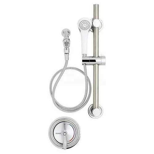The Speakman Sentinel Mark II® Shower Valve line is designed to provide high quality anti-scald pressure balanced protection. Speakman Sentinel Mark II Valves feature an independent center sleeve which allows up to 1 of roughing in variation. Temperature can be adjusted through the temperature limit stops and the valves have a ceramic temperature regulating module. Sentinel Mark II valves feature polished chrome plated brass trim with a metal index plate and are vandal resistant. Sentinel Mark II valves provide superior protection down to 2.0 GPM. The SM-3080-ADA features a metal lever handle for easy operation. The SM-3080-ADA a VS-1001-ADA hand shower system, and S-2500 arm & flange. The SM-3080-ADA is certified to meet ASSE 1016 and ASME A112.18.1/CSA B125.1 standards and is ADA compliant.