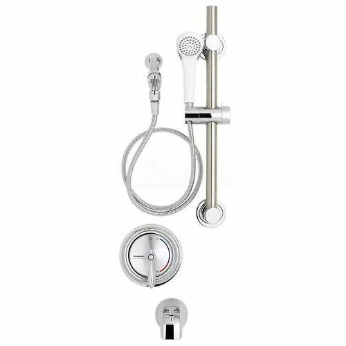 The Speakman Sentinel Mark II® Shower Valve line is designed to provide high quality anti-scald pressure balanced protection. Speakman Sentinel Mark II Valves feature an independent center sleeve which allows up to 1 of roughing in variation. Temperature can be adjusted through the temperature limit stops and the valves have a ceramic temperature regulating module. Sentinel Mark II valves feature polished chrome plated brass trim with a metal index plate and are vandal resistant. Sentinel Mark II valves provide superior protection down to 2.0 GPM. The SM-3090-ADA features a metal lever handle for easy operation. The SM-3090-ADA a VS-1001-ADA hand shower system, S-1556 diverter tub spout and S-2500 arm & flange. The SM-3090-ADA is certified to meet ASSE 1016 and ASME A112.18.1/CSA B125.1 standards and is ADA compliant.