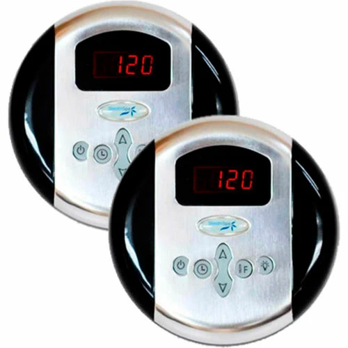The dual control panels are the ideal input devices for any SteamSpa steam generator. With a large LCD displays and a simple to use interface these control panels allow access to room temperature controls and time setting options for your generator. Also featured are memory banks to store your settings for future use. With their stylish design this pair will match with most any bathroom style or décor adding to the luxurious sauna atmosphere. This dual panel system allows for even more flexibility with installation setups including having a panel on the inside and outside of your sauna enclosure. Take control of your ideal sauna experience with our dual control panels and create the steam sauna experience that’s perfect for you.
